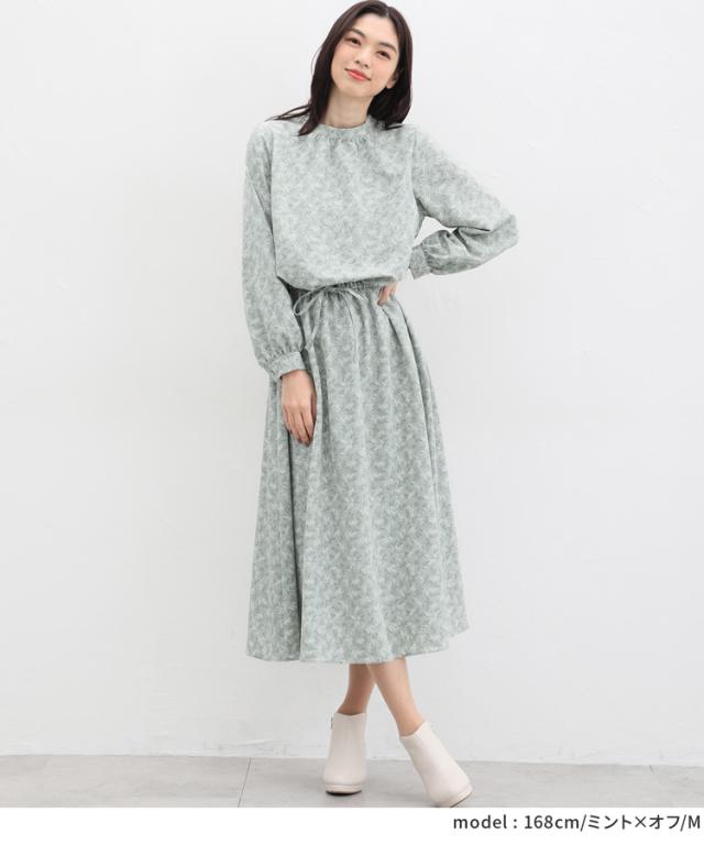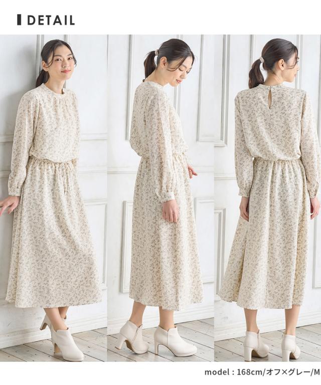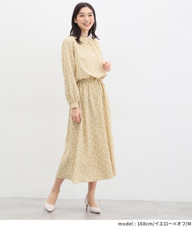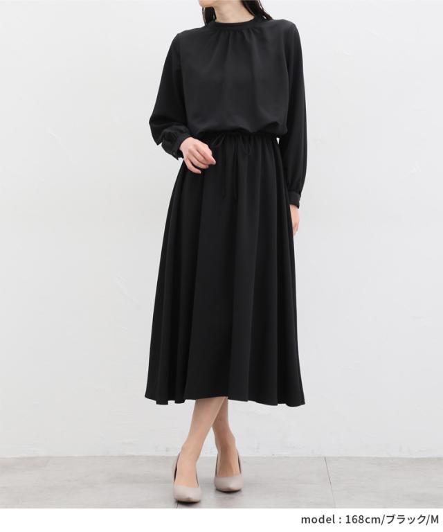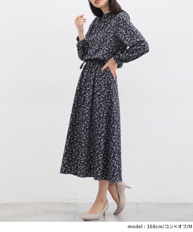 ワンピース レディース 黒 無地 リーフ柄 長袖 ロング丈 ハイネック 上品 大きいサイズ SALE セール Honeys ハニーズ ハイネックワンピース