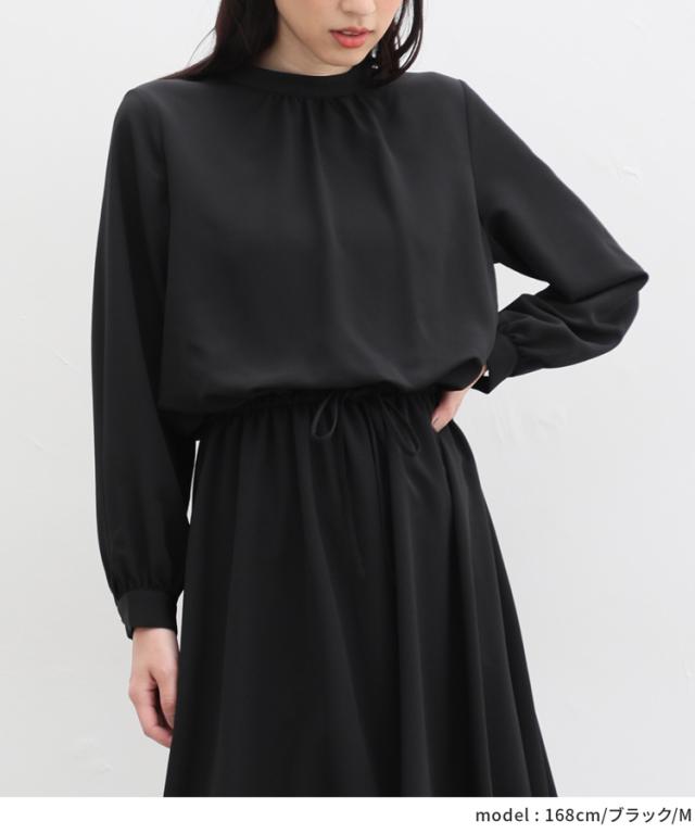シンプルなプチハイネックに控えめなボリューム袖の、クラシカルで上品なデザイン。