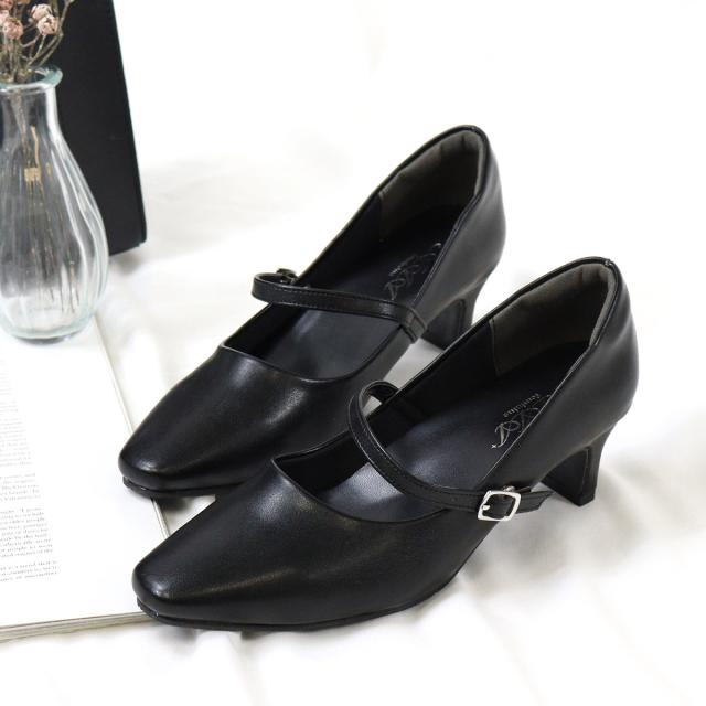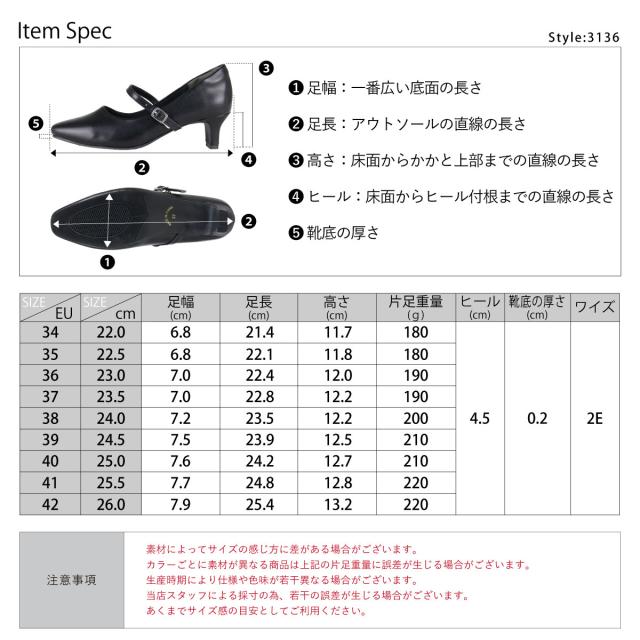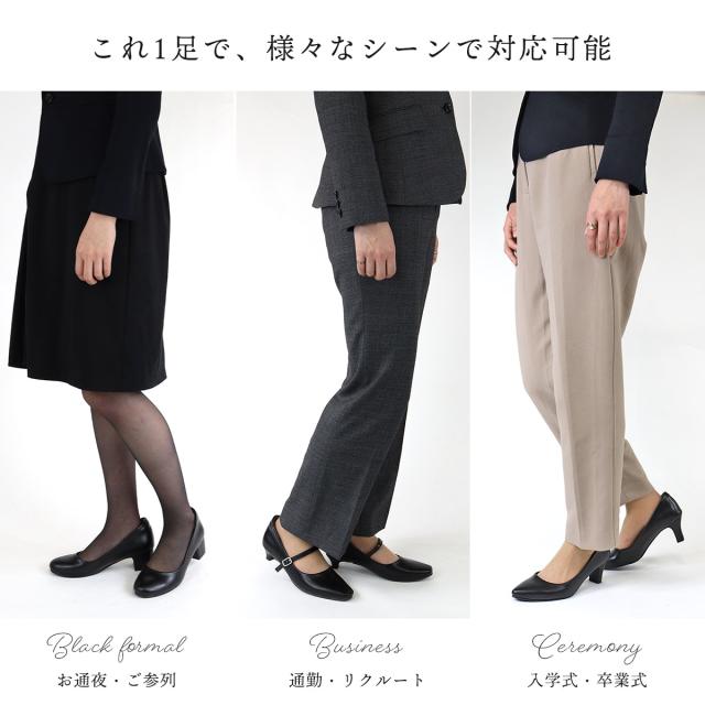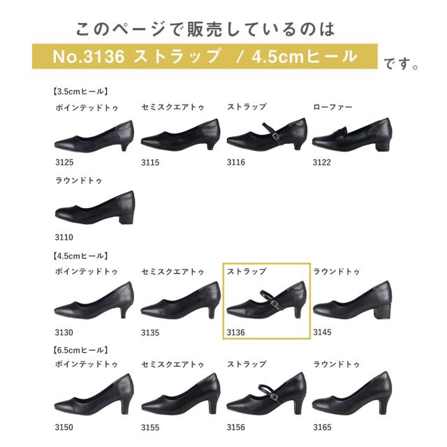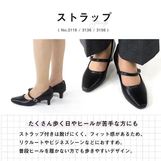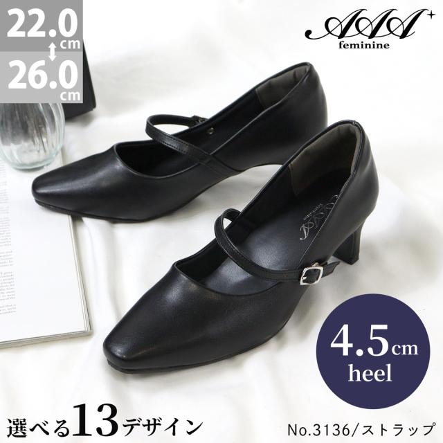 ストラップパンプス セミスクエアトゥ 痛くない ミドルヒール 4.5cmヒール フォーマル No.3136 22.0-26.0cm サンエープラスフェミニン