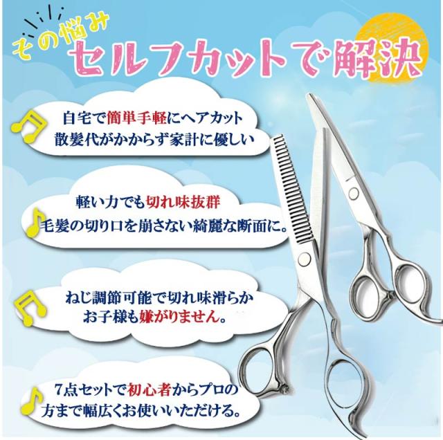 7点セット 簡単セルフカット散髪 ハサミ ウィッグ カット すきバサミ ヘアカット 散髪セット すきばさみ 理容 髪 カット はさみ ハサミ 子供 大人 家庭用 セルフカット ヘアー トリミング シザー