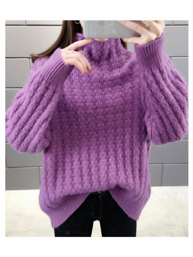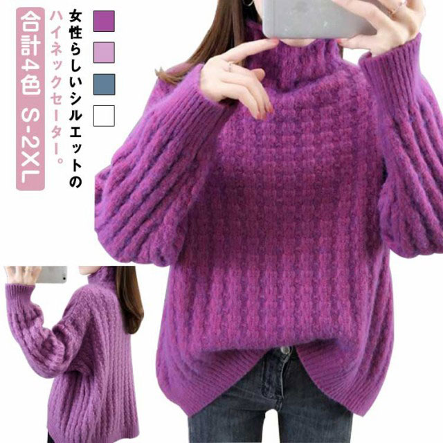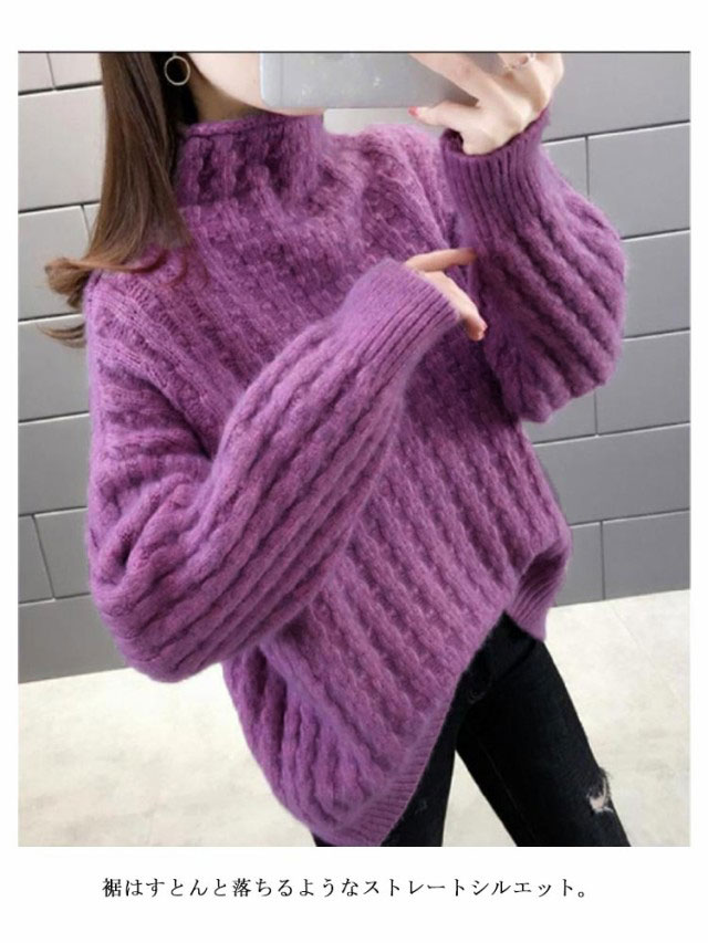 チャンキーニット セーター 秋冬 ハイネックニット レディース 秋冬 送料無料 ふあふあ ヤク風 ニットトップス ケーブルニット ざっくりニット ハイネック ニット リブ 凸凹 無地 ナチュラル 肉厚 体型カバー