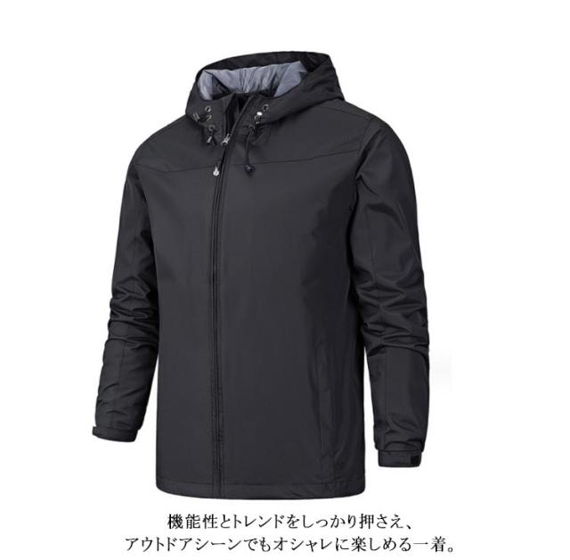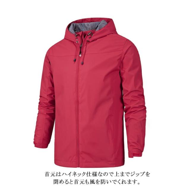 ウインドブレーカー マウンテンパーカー メンズ 防水 フルジップ 防風 フード 大きいサイズ 薄手 アウター 登山 服 自転車 バイク 通勤 通学 春 秋