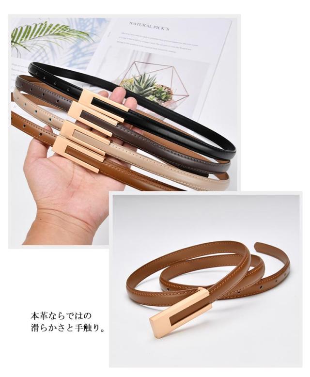 | エレガンスベースのコーデにかかせないゴールドバックル×本革のとってもおしゃれな細ベルトです 本革ならではの滑らかさと手触り。 細みのためワンピースのアクセントにもぴったり。 もちろんパンツやビジネスシーンでも使えます。 | |