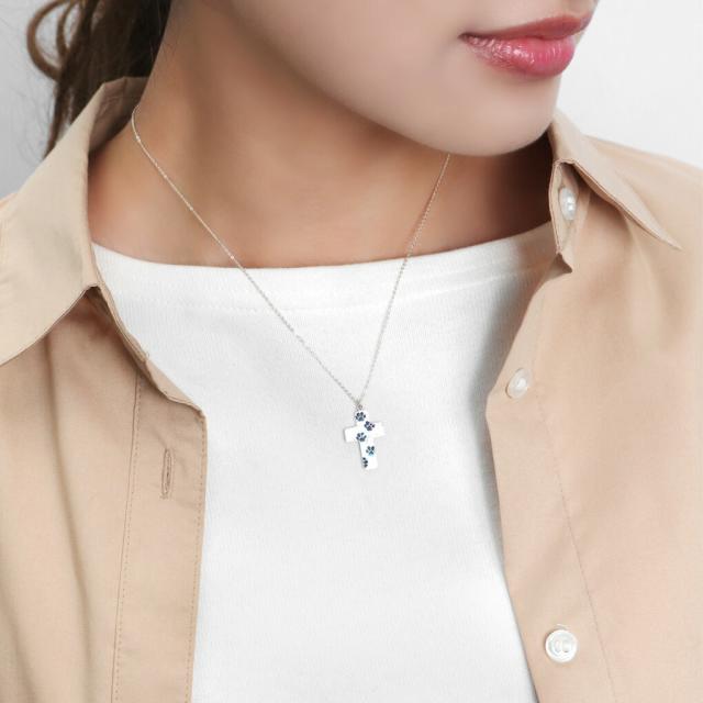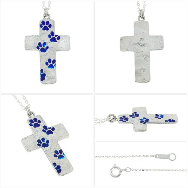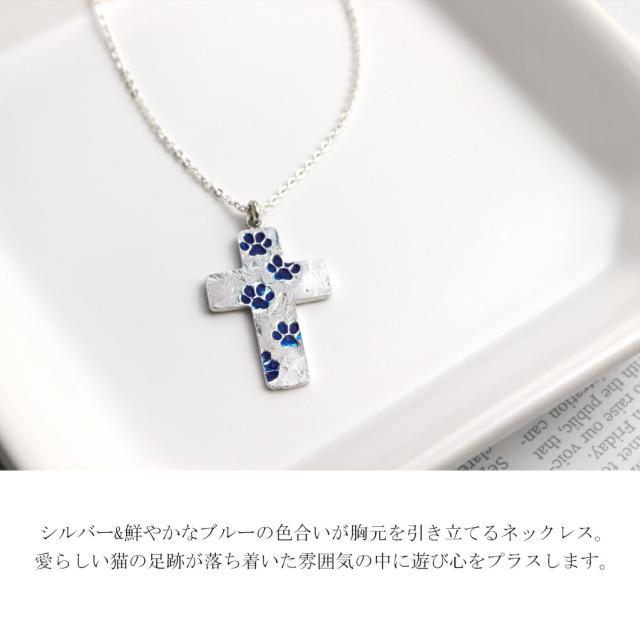 Blue Cat 猫 肉球 足跡 十字架 クロス ペンダント ネックレス シルバー925 ねこ ネコ キャット 猫好き ブルー 青 インク 上品 大人かわいい 大人 綺麗