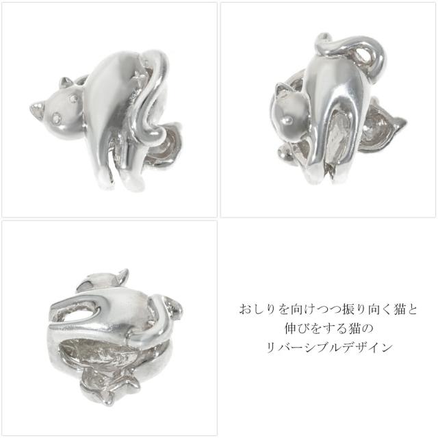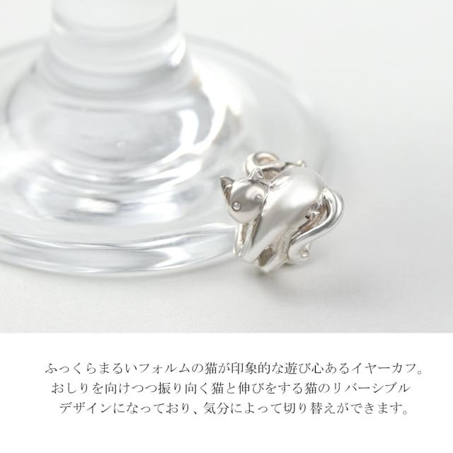 Blue Cat 猫 リバーシブル イヤーカフ 1P 片耳用 ノンホールピアス イヤリング シルバー925 ねこ ネコ キャット 猫好き 透かし 上品 大人かわいい