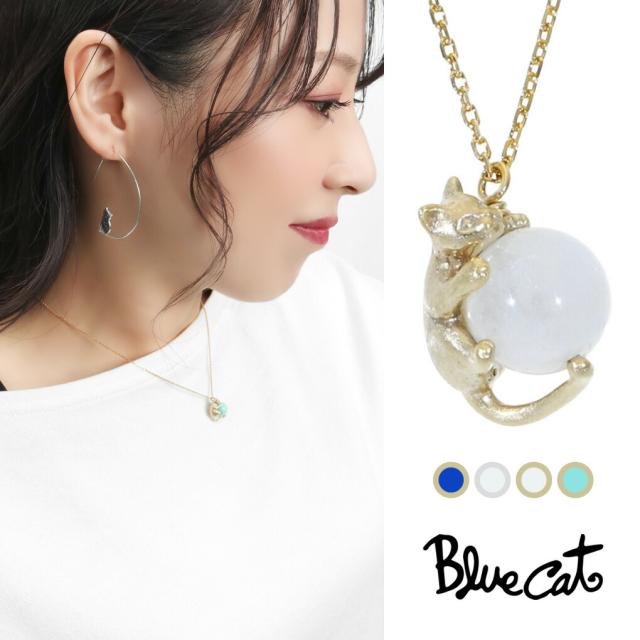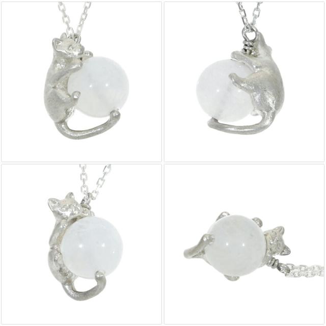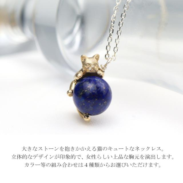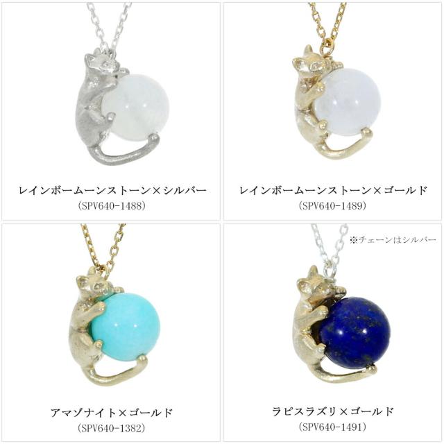 Blue Cat 猫 レインボームーンストーン アマゾナイト ラピスラズリ ペンダント ネックレス シルバー925 ゴールド ねこ ネコ 猫好き 上品 大人かわいい
