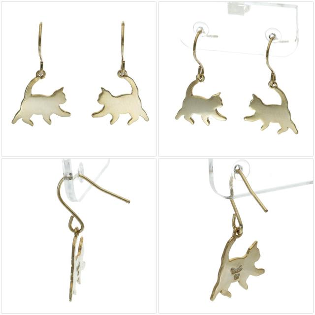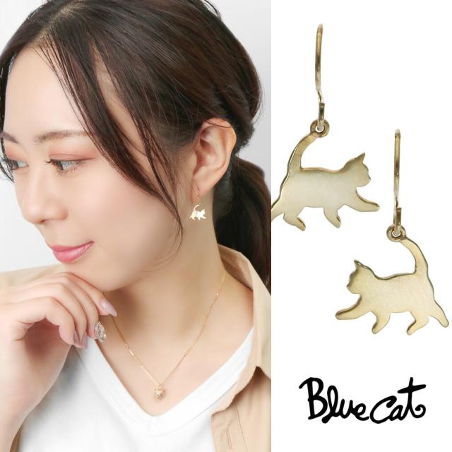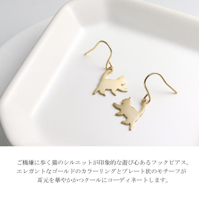 Blue Cat 猫 シルエット 揺れる ピアス 2P 両耳用 フックピアス ゴールド シルバー925 ねこ ネコ キャット 猫好き 上品 大人かわいい フェミニン 大人