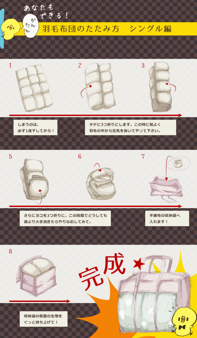 | サイズ | 約 50 × 63 × 30 cm(羽毛布団収納時) |