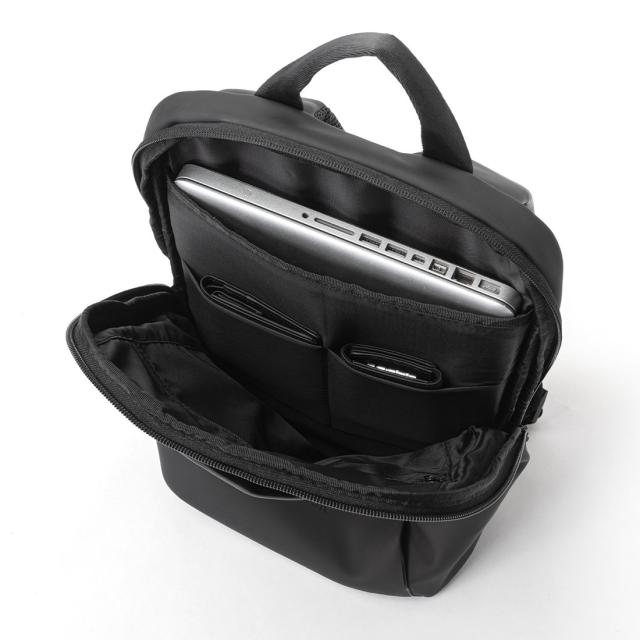 スリム設計ですが、安心の収納力を完備。ノートパソコンやタブレット専用のポケットはもちろん、スリムな弁当箱なら問題なく収納可能です。もちろん、背面ポケットもあるので、収納力は抜群です。