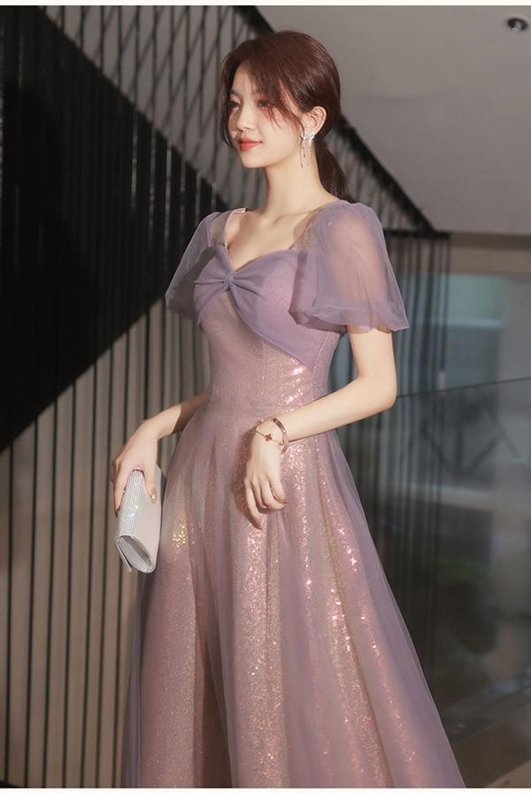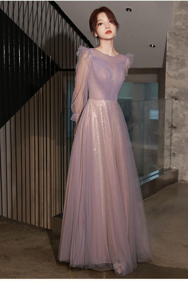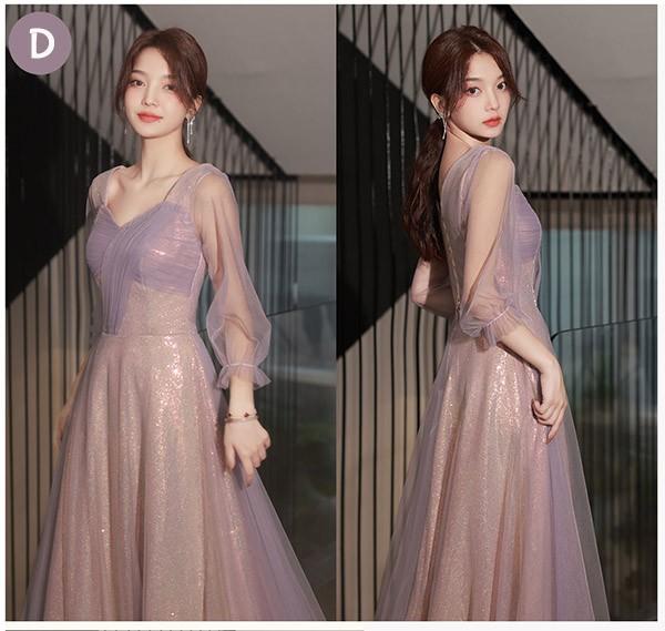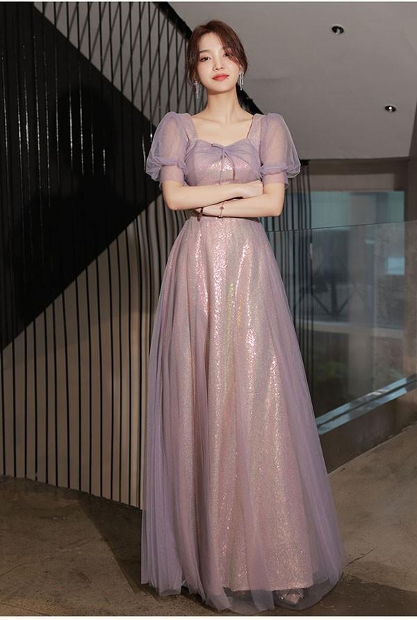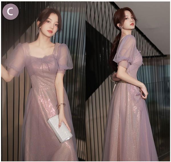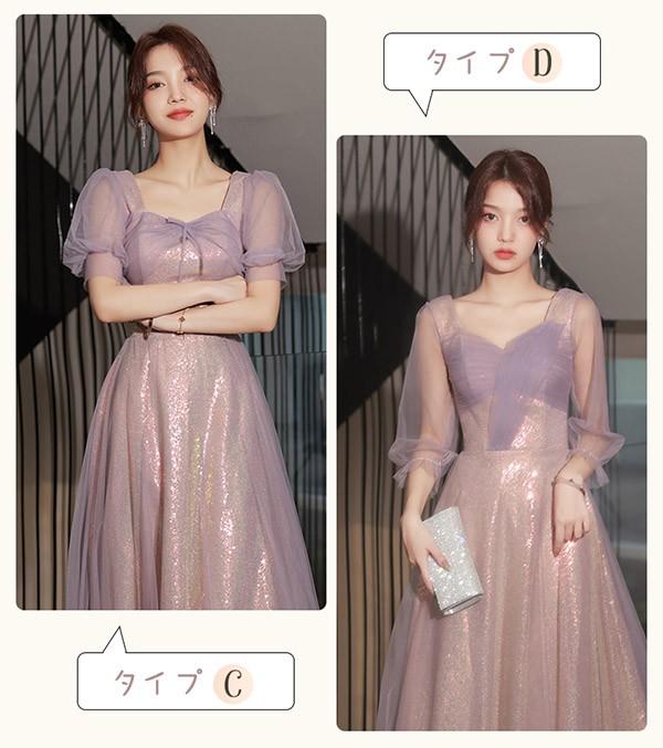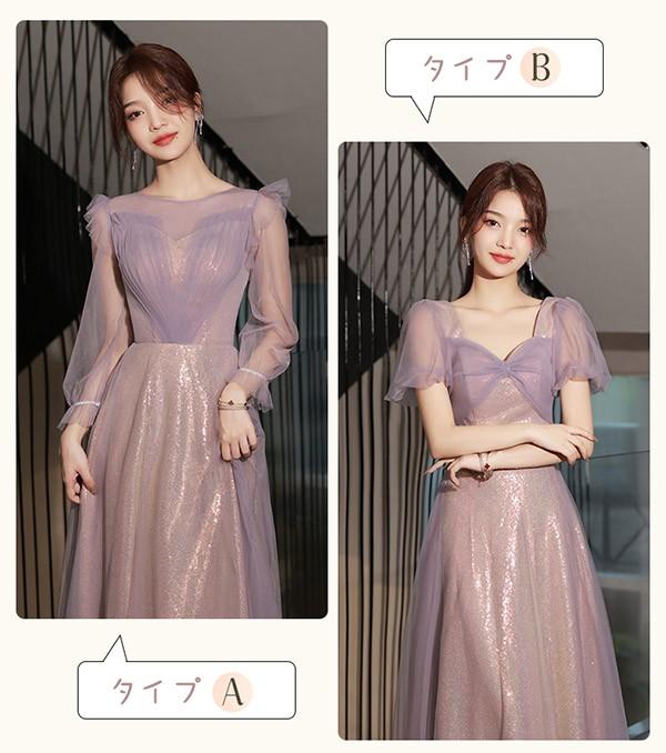 ブライズメイド ドレス ロング 大人 ピアノ 発表会 演奏会 結婚式 母親 ピアノ発表会 編み上げタイプ 袖付き 半袖 長袖 パフスリーブ スクエアネック ワンピース 演奏会ドレス 演奏会用ドレス 二次会 大きいサイズ 体型カバー 謝恩会 20代 30代 S M L 2L 3L パープル 紫