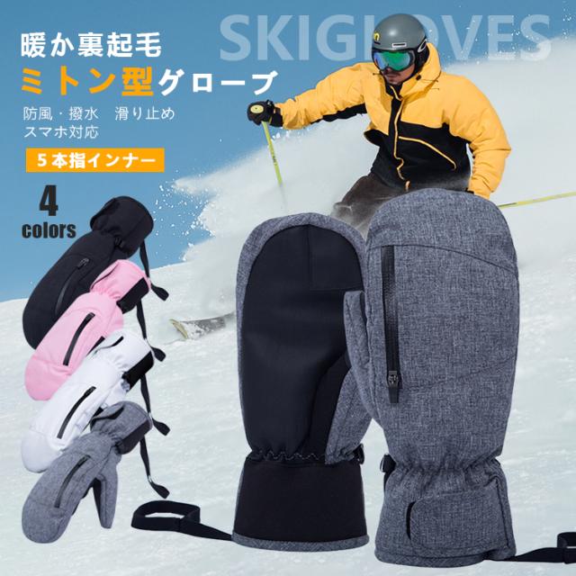 ミトン型グローブ スノーグローブ 手袋 5本指インナー スマホ対応 レディース メンズ 滑り止め 裏起毛 4colors 保温 防風 防寒 撥水加工 暖か耐摩耗補強 冬 雪山 キャンプ アウトドア スキー スノー スマホ操作