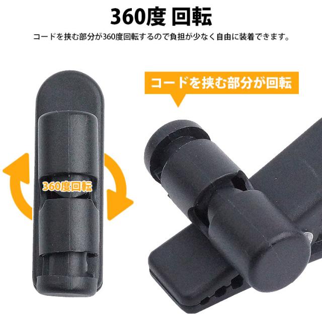 コードを挟む部分が360度回転するので負担が少なく自由に装着できます。