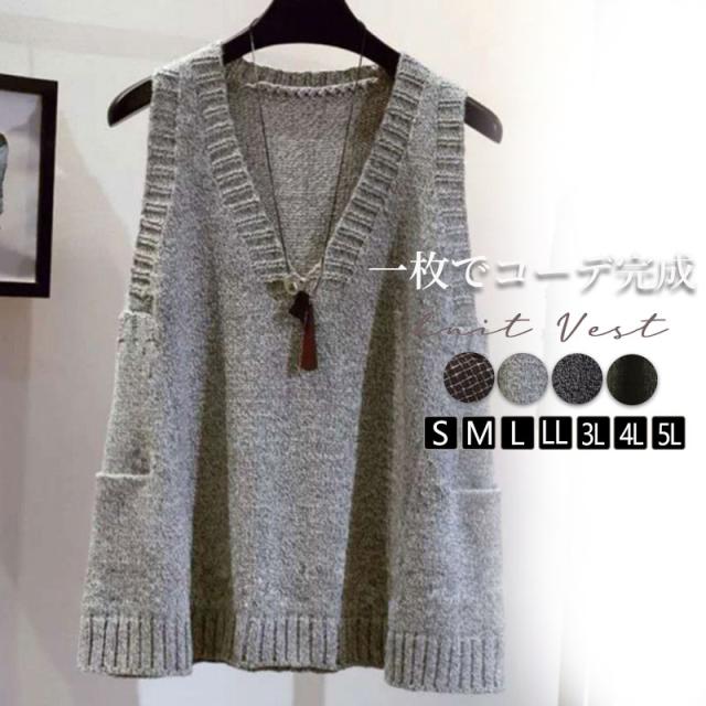 爆売中 ニニットベストレディース 大きいサイズ コーデ 重ね着 ジレ 秋コーデ 着痩せ ノースリーブ ロング丈 vネック 体型カバー セーター