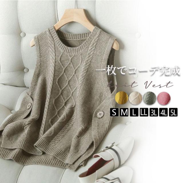 値下げ ニットベスト レディース トップス 大人 カジュアル 重ね着 抜け感 オフィス ゆったり シンプル 着回し レイヤード 体型カバー プチプラ