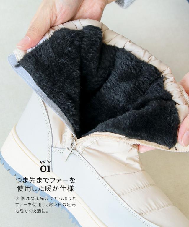 内側はつま先までたっぷりとファーを使用し、寒い日の足元も暖かく快適に。