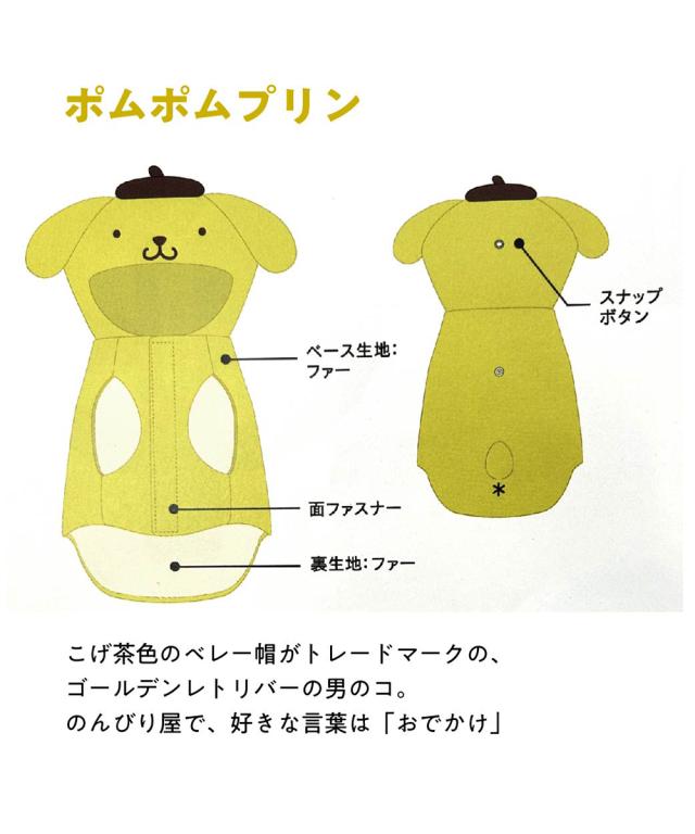 - 冬用にポムポムプリンSサイズ購入しました。娘がポムポムプリンが好きでワンちゃんが黒色の子なので黄色が似合うのでSサイズで丁度よく可愛かったです。冬楽しみです。