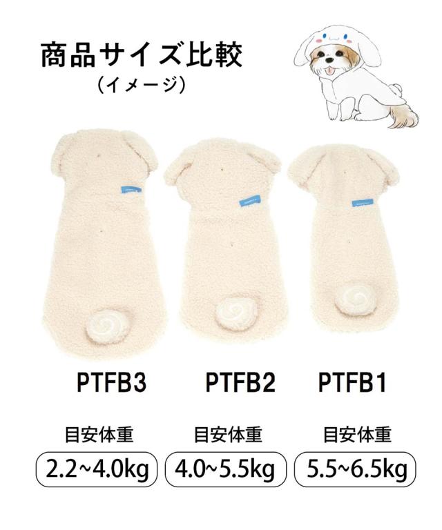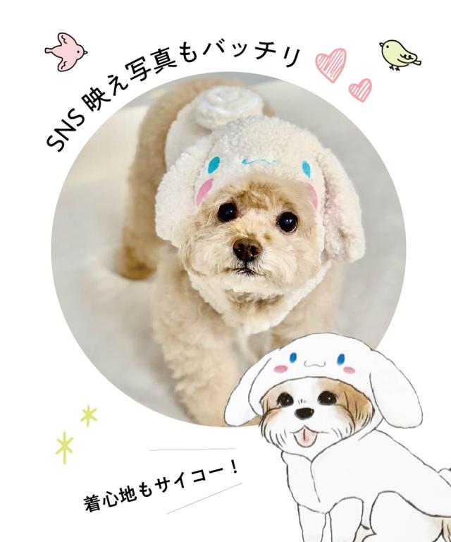 - 3kg強か上半身細い子ならいつものサイズで大丈夫かとおもいます。 シナモロールを購入しました。白というよりクリーム色。 着せる予定の子はSサイズを着ることが多かったのでこちらもS購入。 生地がぶ厚めで肩側の布はピッタリで作られているのか、肩にひっかかり動きづらそうでした。 ちょっと小柄な子(いつもSSサイズ)は着られました。慣れてる子には可愛らしいです。 フードを被らない時はボタンがついていて下を向いても被わないのは良いです。 梱包も問題なし。