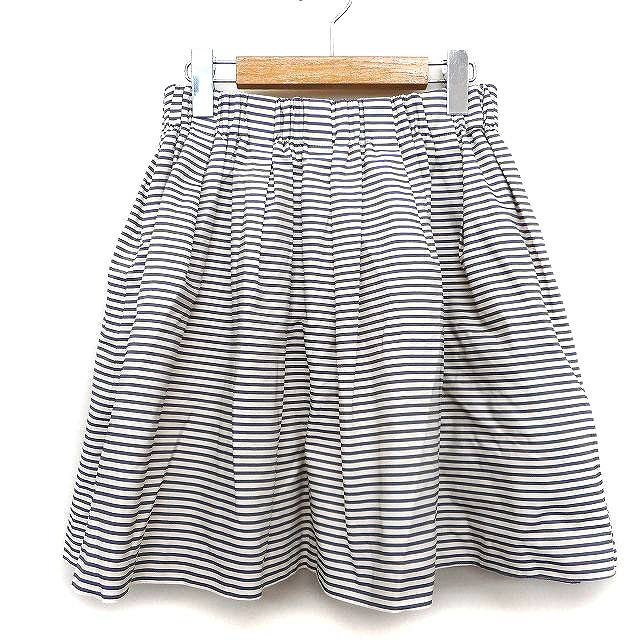 【中古】アナトリエ ANATELIER フレア スカート ミニ 膝上 ボーダー 柄 ギャザー 38 アイボリー 白 /HT19 レディース