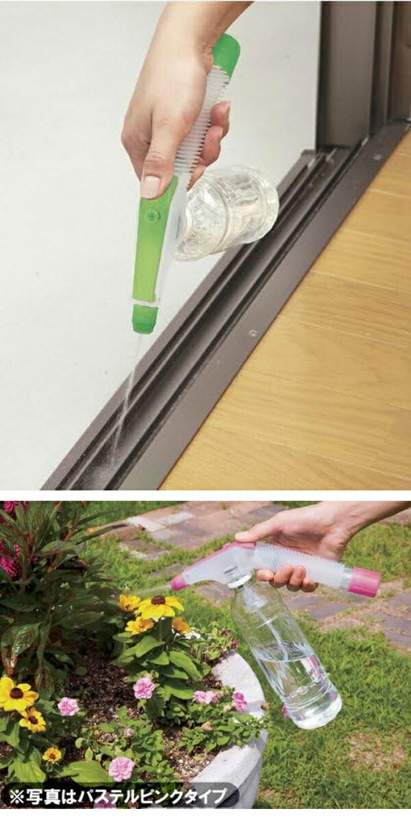 ●水量調節ツマミでジェットからミストまでの噴射が可能です。 ●植物のお手入れから掃除まで幅広い用途でご利用いただけます。 ※市販の500ml以上のペットボトルをご利用ください。 ※輸入ミネラルウォーターなどのペットボトルや装着口が特殊な物は 一部取り付けが出来ない場合があります。 |