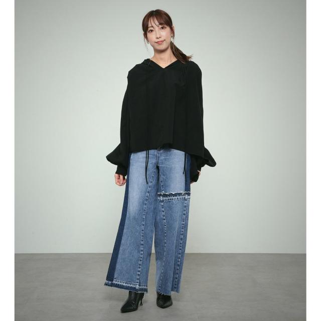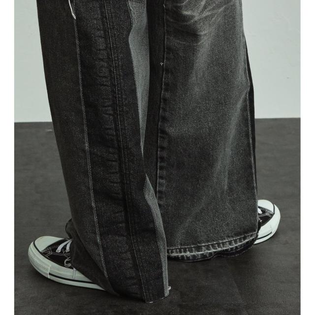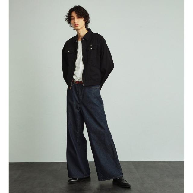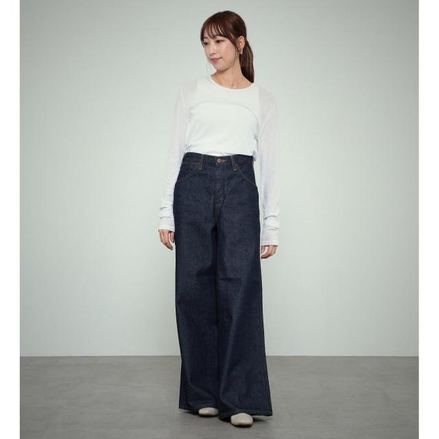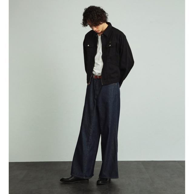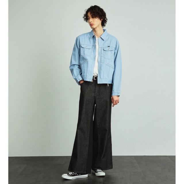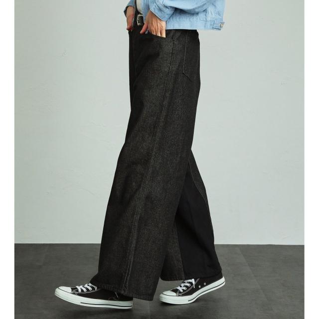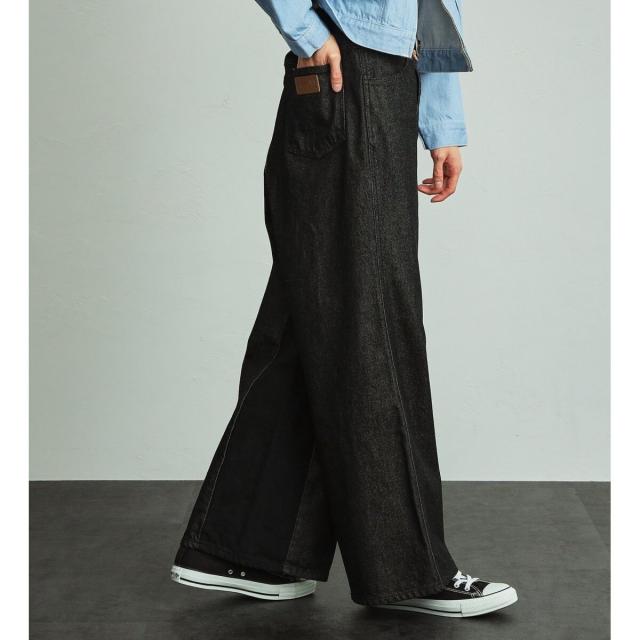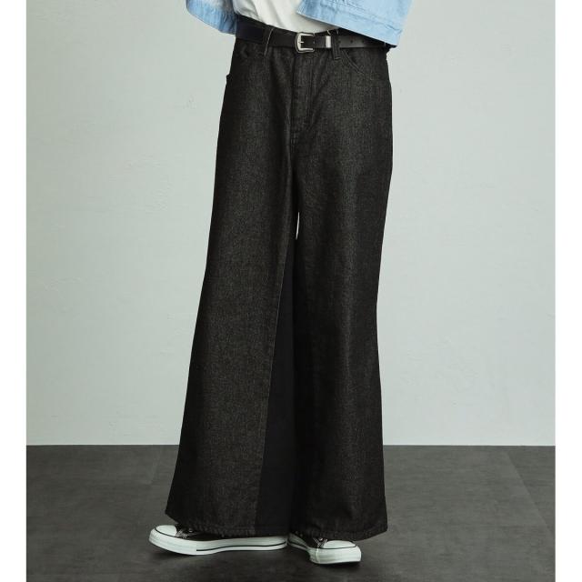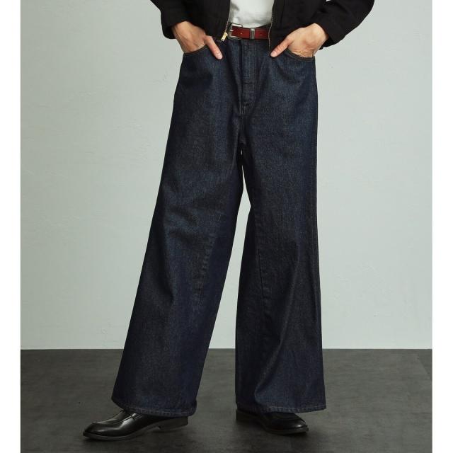 FLAREJEANをベースに、ワイドシルエットになるように内股に左綾デニムをプラスしたビッグサイズのフレアワイドパンツです。