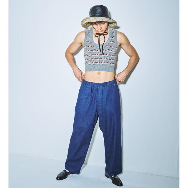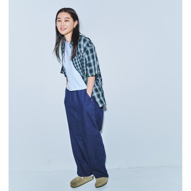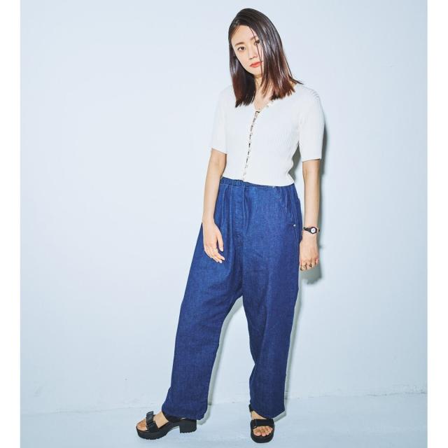 シルエットはモモ周りには適度なゆとりを持たせながら、ヒザからスソにかけて徐々に細くなるテーパードシルエット。