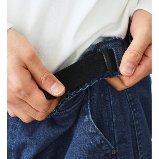 しかも調整範囲を左右のアジャスターで、前部・後部と独立して調整ができ、前後の調整具合で穿きこなしの雰囲気を変えることも可能です。