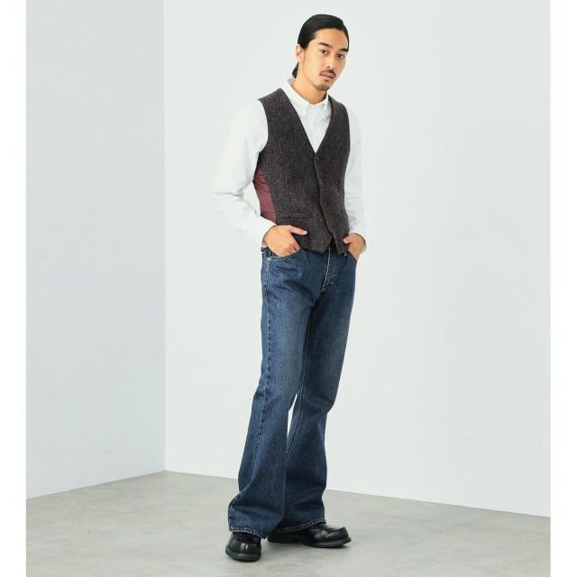 股上深めで太ももから膝に掛けてフィットし、裾にむかって大きくフレアーしたベルボトムです。