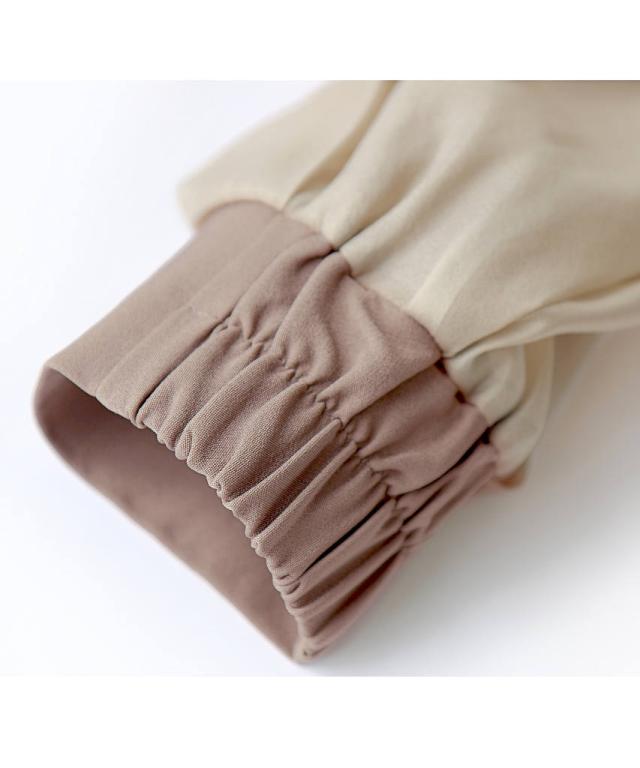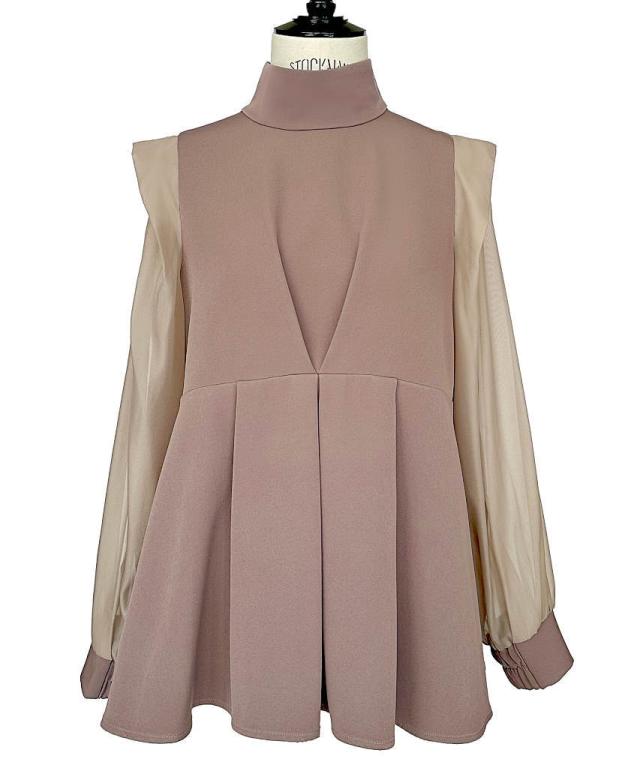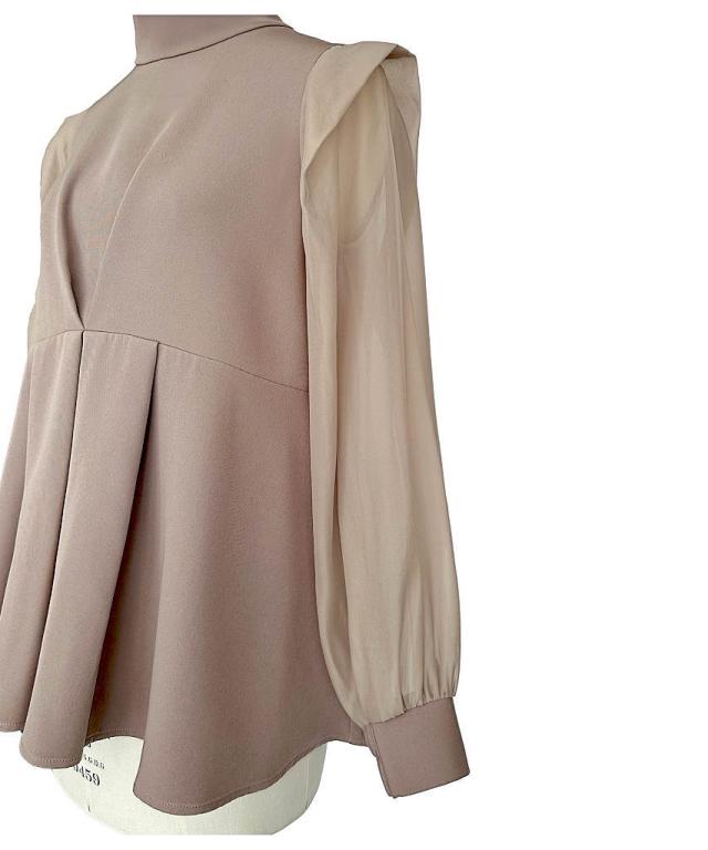 タックフレアで華やかさを袖の透け感で軽やかさをプラス。
