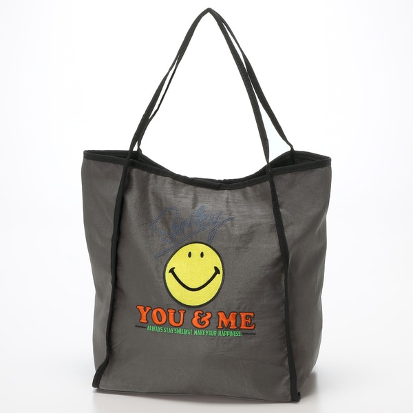 持つだけでみんながハッピーになれそうなスマイルモチーフを刺繍したトートバッグ。