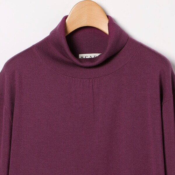 シンプルなデザインがコーディネートのベーシックとして活躍するニットトップス。毛とシルクのブレンド素材は滑らかな肌触りで快適な着心地。折り返しのハイネックデザイン、首もとにはさりげなくギャザーをほどこしワンポイントに。ゆったりとしたドロップショルダーで仕上げています。