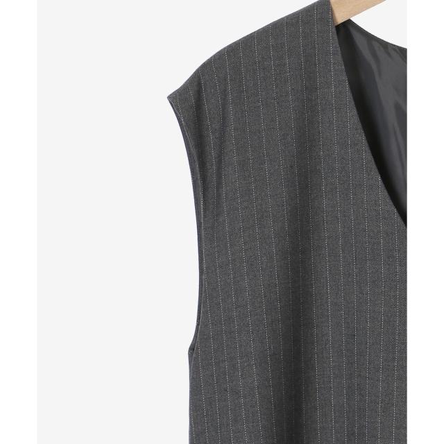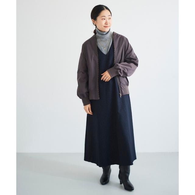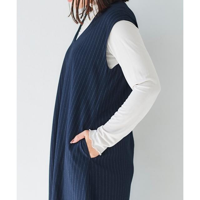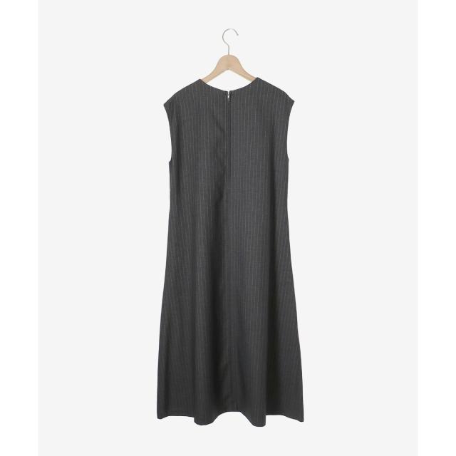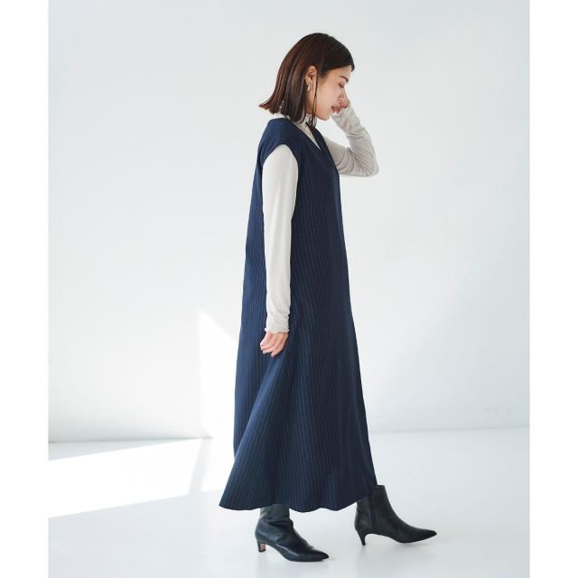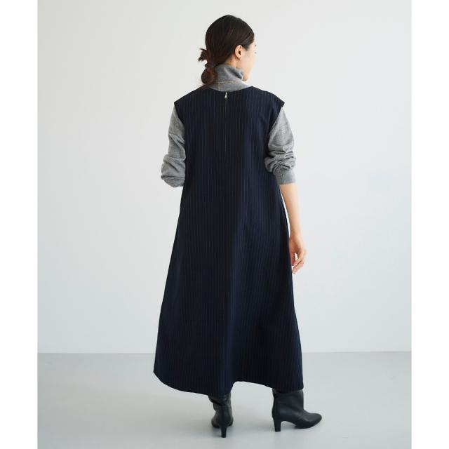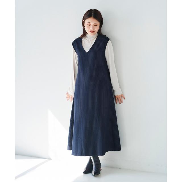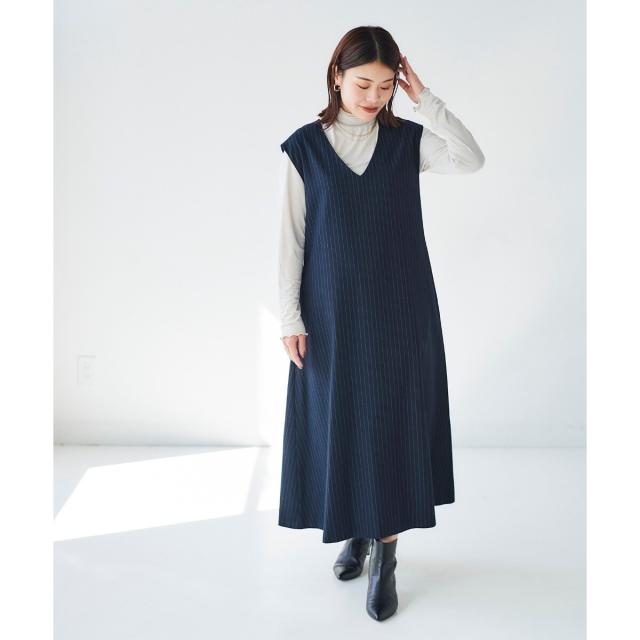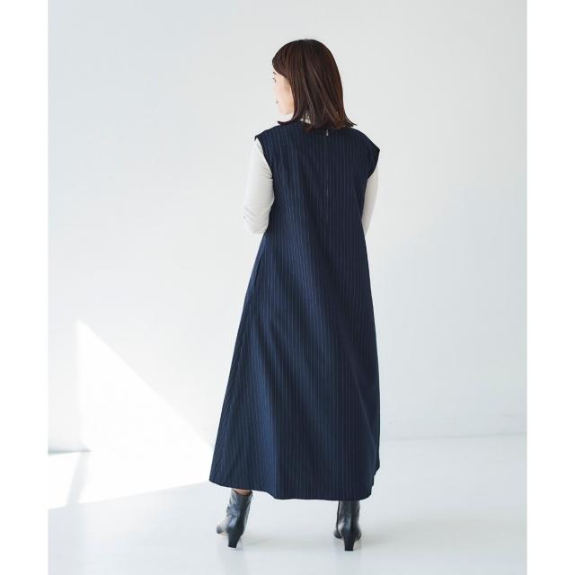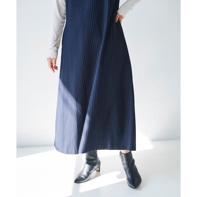 ピンストライプ柄の生地でAラインシルエットに仕上げた大人のロングワンピース。