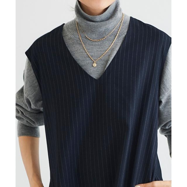 インナーにハイネックを合わせたレイヤードスタイルや、