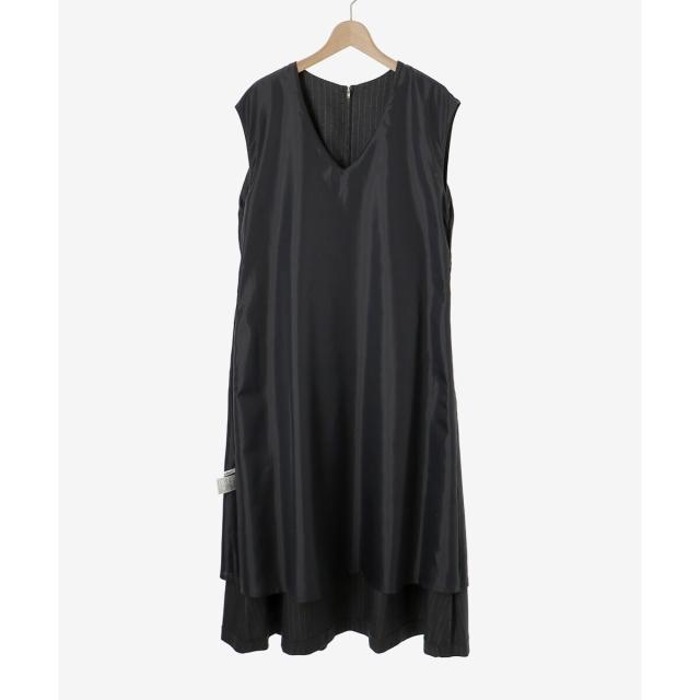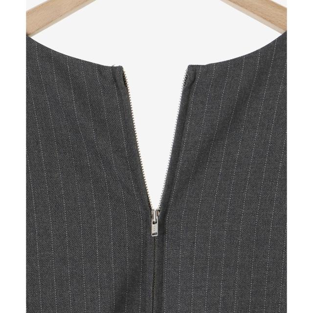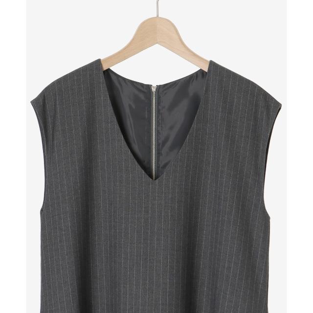 すっきりとしたVネックラインやバックのシルバーカラーのファスナーなど、