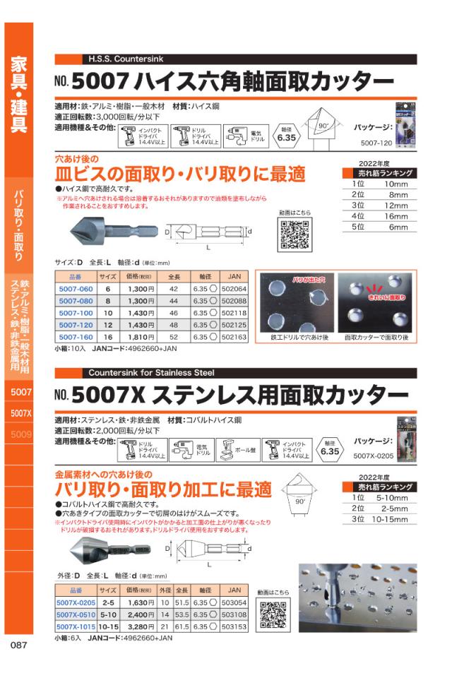 スターエム(STAR-M) No.5007-120 ハイス六角軸面取カッター 12mm