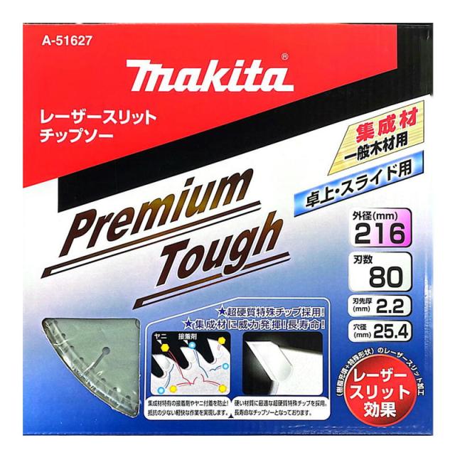 マキタ A-51627 プレミアムコーティングチップソー 216mm 刃数80 (一般木材用)【スライドマルノコ・卓上マルノコ用】