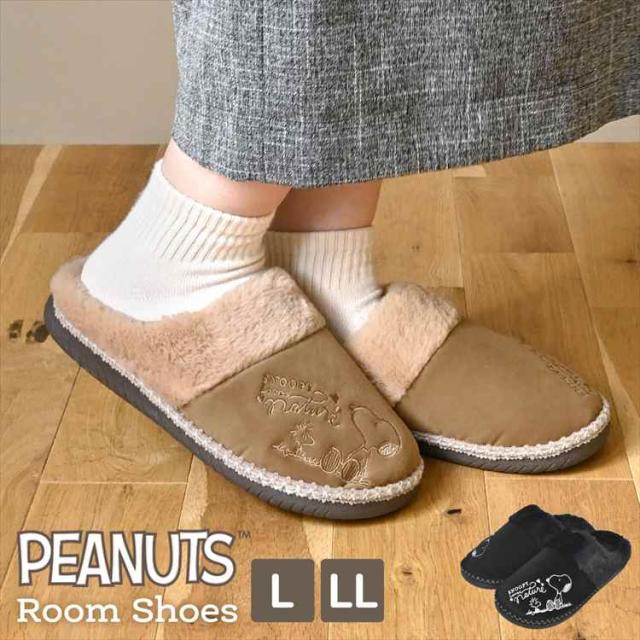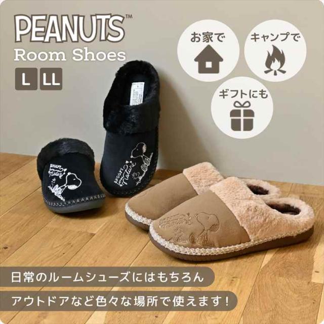 ルームシューズ スヌーピー あったか スリッパ 冬用 もこもこ 厚底スリッパ レディース アウトドア 防寒 ムートン シューズ ファー 冬 秋 おしゃれ かわいい 軽量 滑り止め SNOOPY キャラクター 靴 あたたかい L LL フリース 黒 ブラック ブラウン 女性 大人 プレゼント