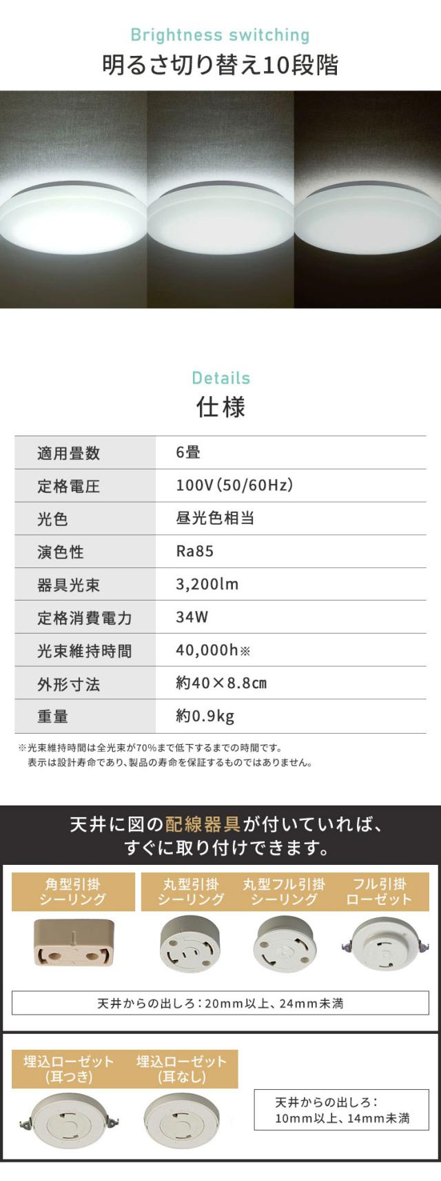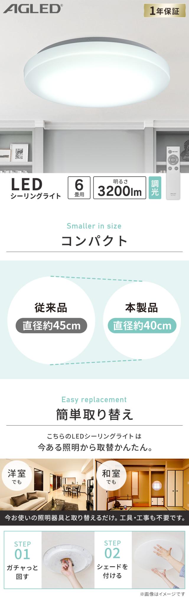 シーリングライト led 6畳 調光 リモコン付き 洋室 和室 led照明器具 天井 照明 リビング ledシーリングライト 工事不要 取付簡単 新生活 アイリスオーヤマ ACL-6DGR *