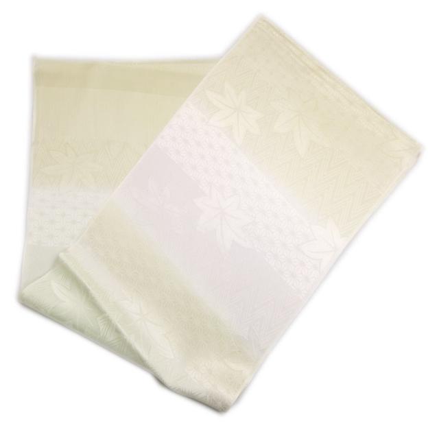 帯揚げ 帯上げ 正絹 引き染ぼかし 淡黄色淡緑色淡紫色地楓麻の葉 着物 訪問着 色無地 フォーマル カジュアル 帯あげ きもの