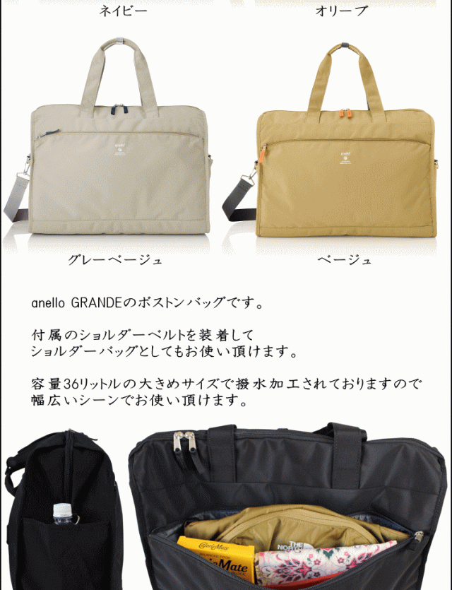 トートバッグ anello GRANDE アネロ グランデ ボストンバッグ GTM0178Z 大容量 軽量 撥水 スポーツシリーズ 2way ショルダーバッグ ダークブラック色 ブラック色 ネイビー色 オリーブ色 グレーベージュ色 ベージュ色