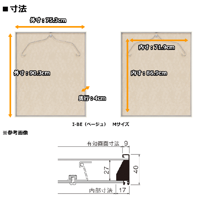 I-BE(ベージュ):フレームカラー/アイボリー バックボード/ベージュ
