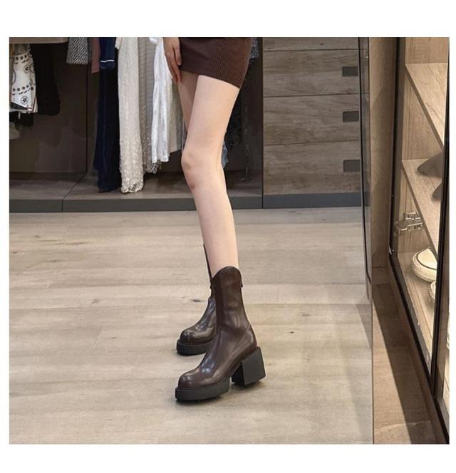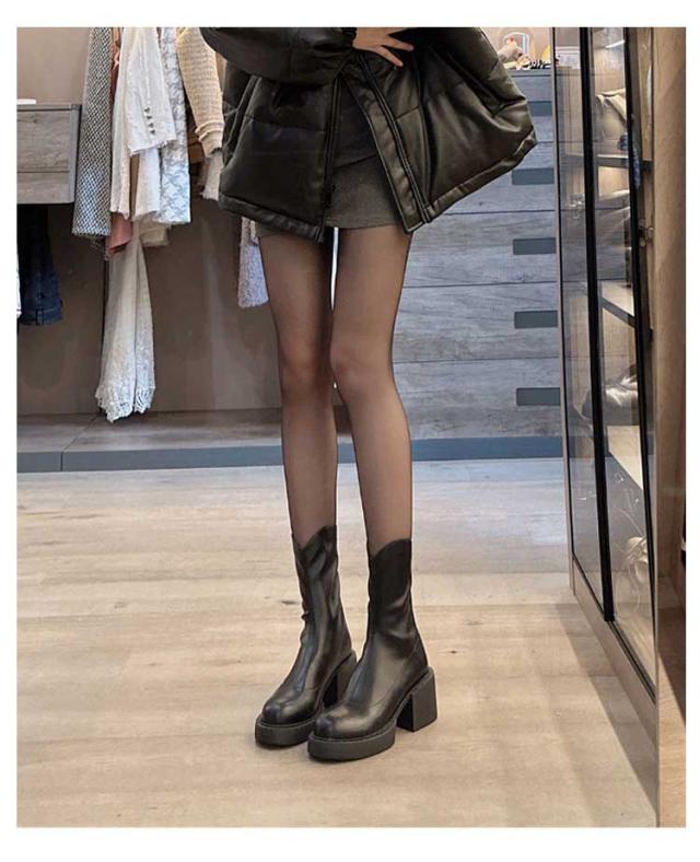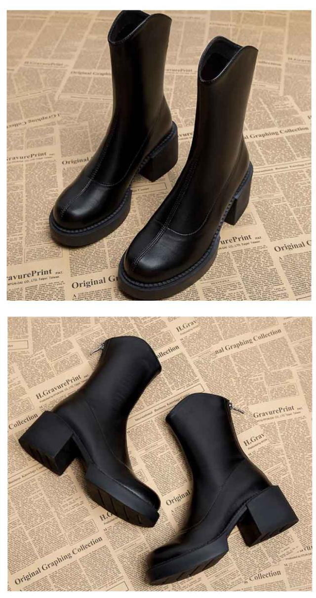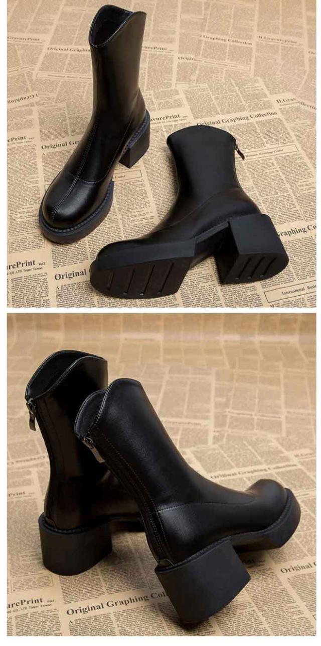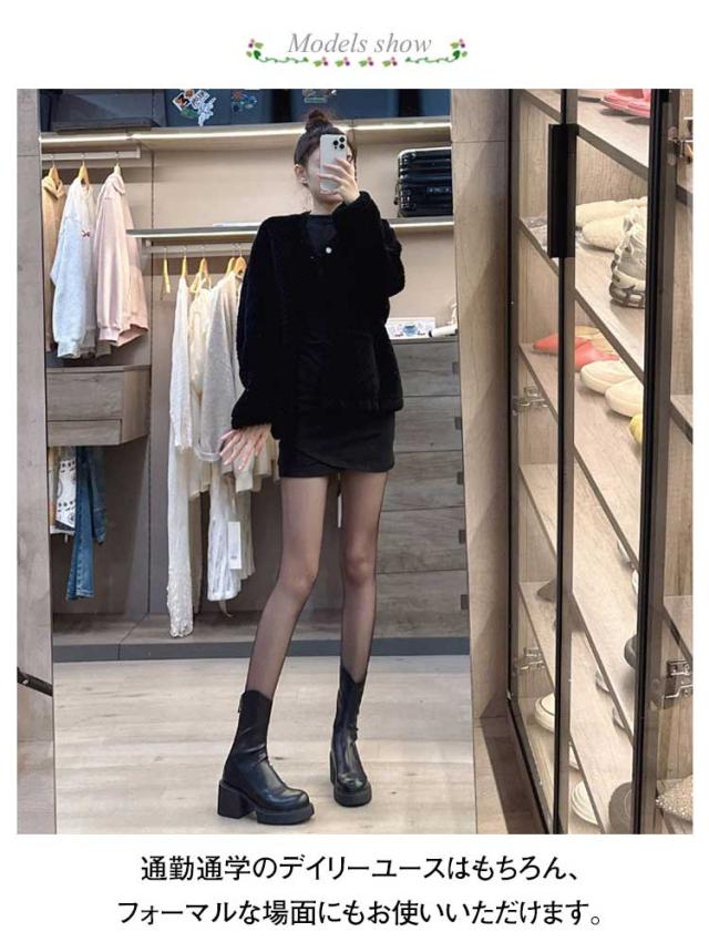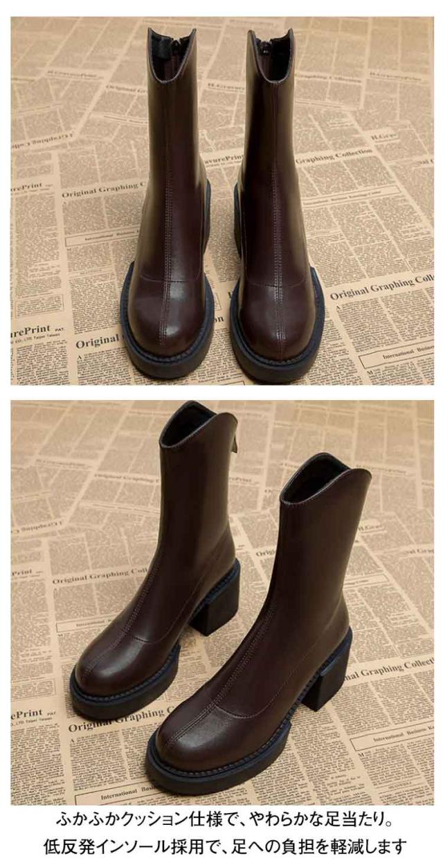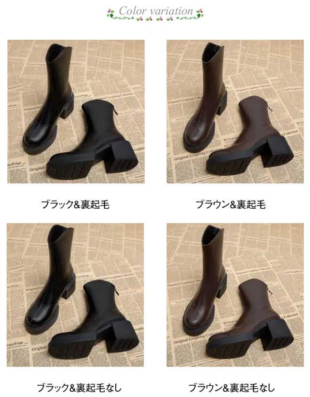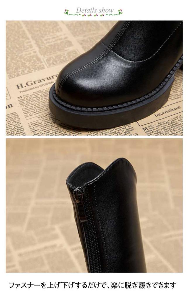 ショートブーツ レディース 裏起毛 ストレッチブーツ ミドルブーツ サイドジップ 太ヒール ハイヒール 美脚見せ 履きやすい 痛くない 歩きやすい 柔らか ブラック ブラウン 疲れない カジュアル 防寒 靴 送料無料