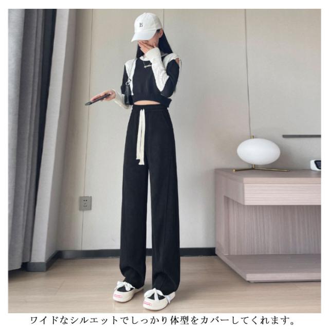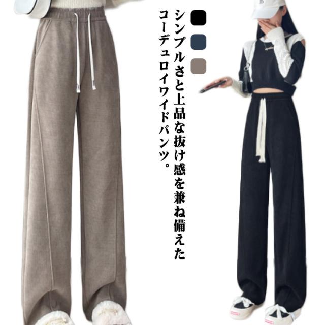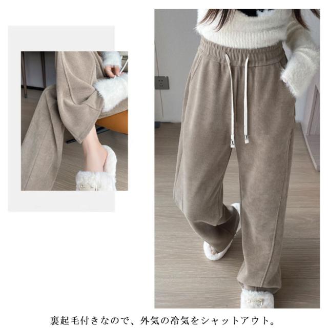 パンツ レディース 裏起毛 ワイドパンツ コーデュロイ ボトムス あったかい 防寒 低身長 高身長 ワイドレッグ ゆったり 大きいサイズ カジュアル ウエストゴム お洒落 秋冬 キレイめ 送料無料