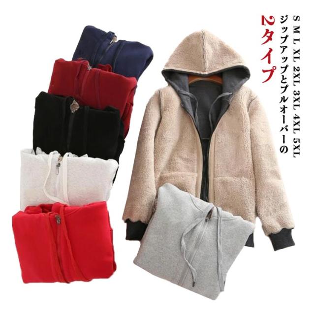 パーカー レディース メンズ 長袖 ジャージ 裏ボア ジップアップパーカー プルオーバーパーカー ポケット付き スウェット トレーナー 保温 厚手 防寒 裏起毛 極暖 ユニセックス アウター 大きいサイズ 体型カバー