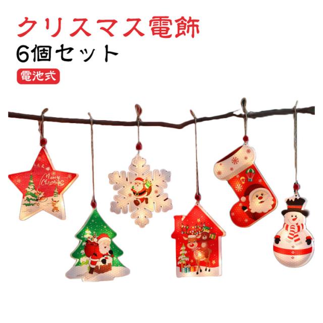 6個セット クリスマスツリー クリスマス 電飾 LED オーナメント クリスマス 飾り 光る オーナメント LED ライト イルミネーション ライト 電池式 デコレーション 照明 雪だるま 靴下 雪の結晶 星 サンタ クリスマスライト ショップウィンドウ 壁飾り 玄関 ドア 送料無料