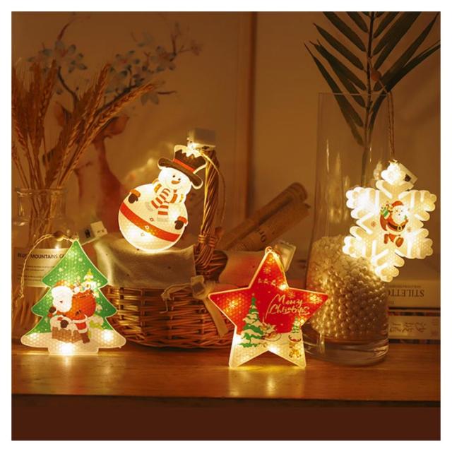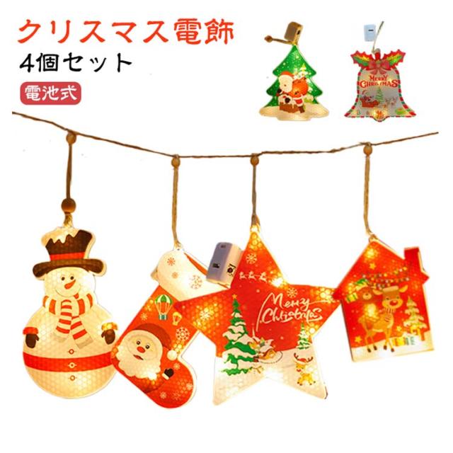 4個セット クリスマス 電飾 LED オーナメント クリスマスツリー クリスマス 飾り 光る オーナメント LED ライト イルミネーション ライト 電池式 デコレーション 照明 雪だるま 靴下 雪の結晶 星 サンタ クリスマスライト 送料無料