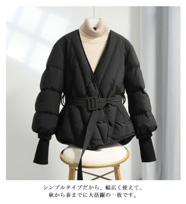 | 秋冬の王道アイテム軽くて暖かい中綿コート。 長すぎないハーフ丈でボトムスともスカートとも合わせやすい。 深めのVネック×ノーカラーデザインはすっきりとした顔周りにマフラーなどの小物とも好相性。 ウエストベルトも付きでカジュアルになりすぎず女性らしく着こなせます♪ 程よい厚みある中綿で、軽い着心地抜群です。 シンプルタイプだから、幅広く使えて、秋から春までに大活躍の一枚です。 | |