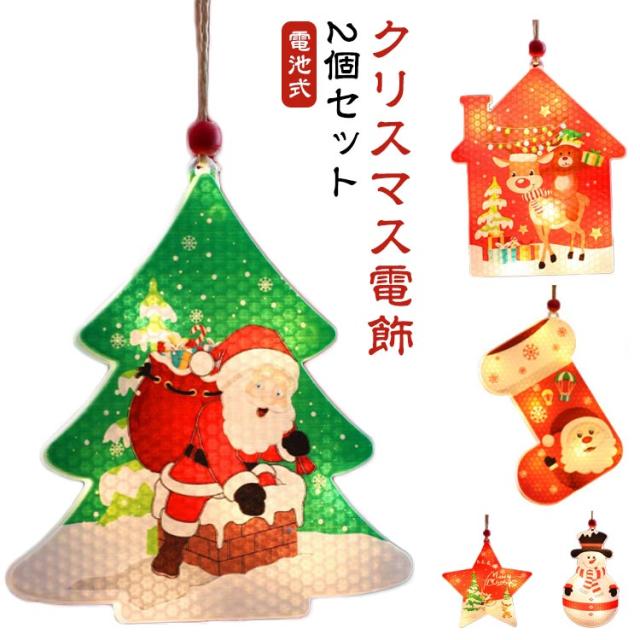 2個セット クリスマスツリー クリスマス 電飾 LED オーナメント クリスマス 飾り 光る オーナメント LED ライト イルミネーション ライト 電池式 デコレーション 照明 雪だるま 靴下 雪の結晶 星 サンタ クリスマスライト ショップウィンドウ 壁飾り 玄関 ドア 送料無料