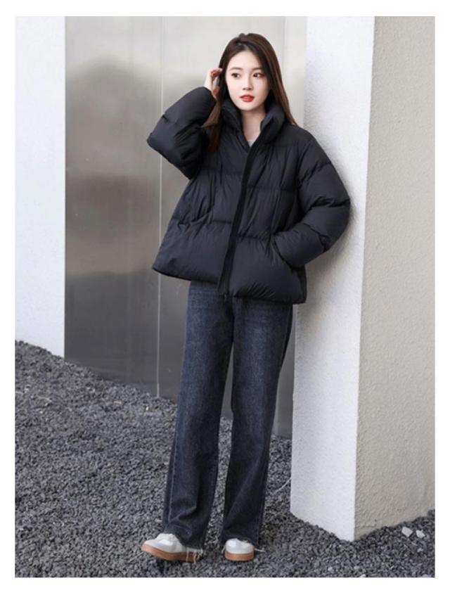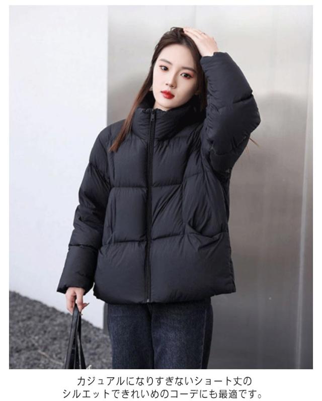 中綿ジャケット 中綿ブルゾン フェイクダウンジャケット レディース アウター ダウンコート ショート丈 防寒対策 カジュアル スタンドカラー ブラック 黒 冬服 低身長