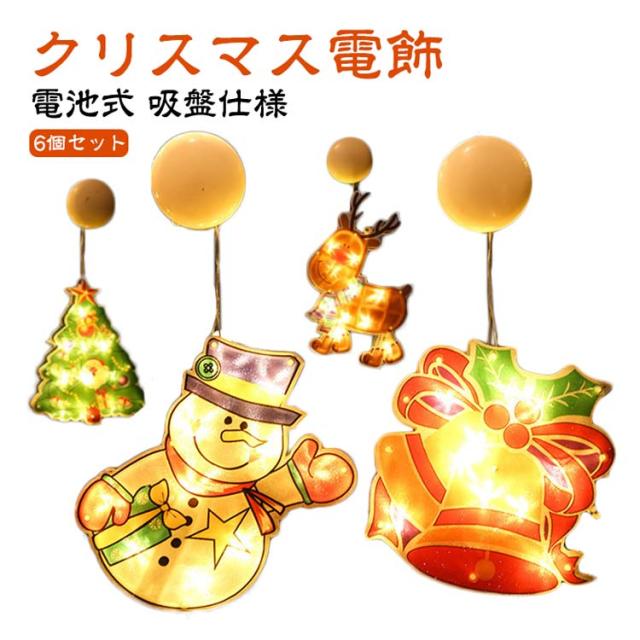 6個セット LED ライト クリスマス 飾り 光る イルミネーション ライト 電池式 クリスマス 電飾 LED オーナメント 吸盤 クリスマスツリー デコレーション 照明 トナカイ 雪だるま サンタ 鈴 クリスマスライト ストリングライト 送料無料