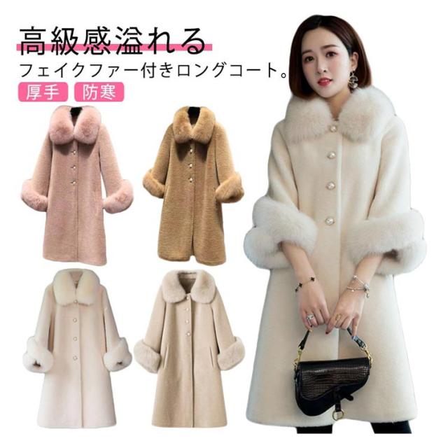 ボアコート ムートンコート ロング レディース 冬 ファーコート フェイクムートン ロングコート オーバーコート アウター 防寒 おしゃれ フェイクファー付き シンプル 通勤 きれいめ エレガント